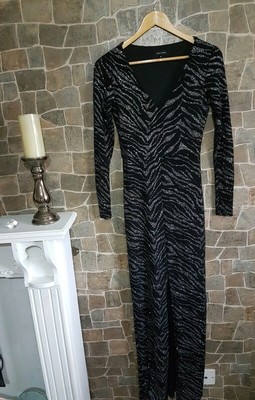 Long Sparkly Black Dress With Slit At Front Longsleeve Christmas Party Uk 8 Ebay